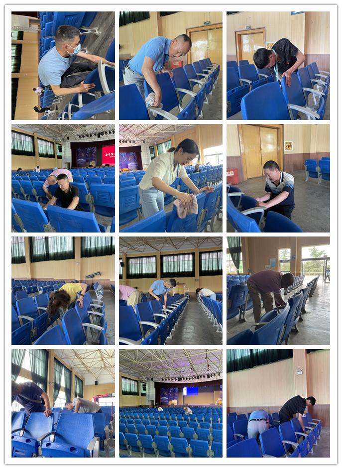 活动中,党员们发挥敢于担当、勇于奉献的精神,不怕脏、不怕臭、不怕累,集中打扫礼堂1240个座椅、周边墙群等。清理过后,礼堂四周整洁美观,整体环境焕然一新。