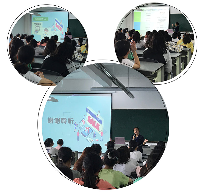 电子商务专业由余林娟老师进行了生动形象的专业介绍,余老师从大家熟知的网络购物、社交软件、直播带货等电商案例入手,为同学们展示了电子商务的常见模式及其在我们生活、工作中起到的巨大作用;利用案例让新生们了解电商专业概况、知识体系及就业方向;同时又通过往届优秀学子在各类技能大赛获取的优异成绩,激励他们对未来的学习生活充满信心。
