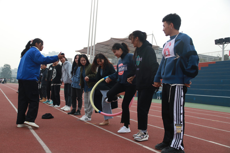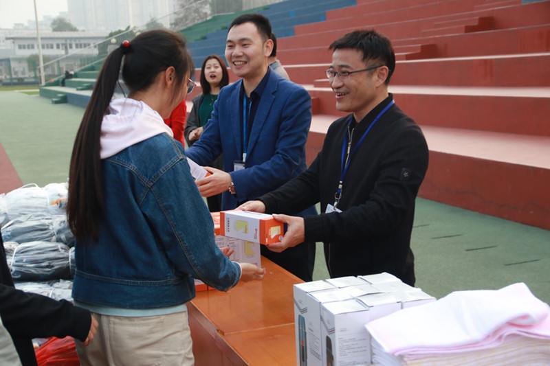 拓展活动结束后,现场领导和老师为20级同学发放冬装,同时也为本次活动荣获一等奖、二等奖、三等奖的队员颁发了奖品。