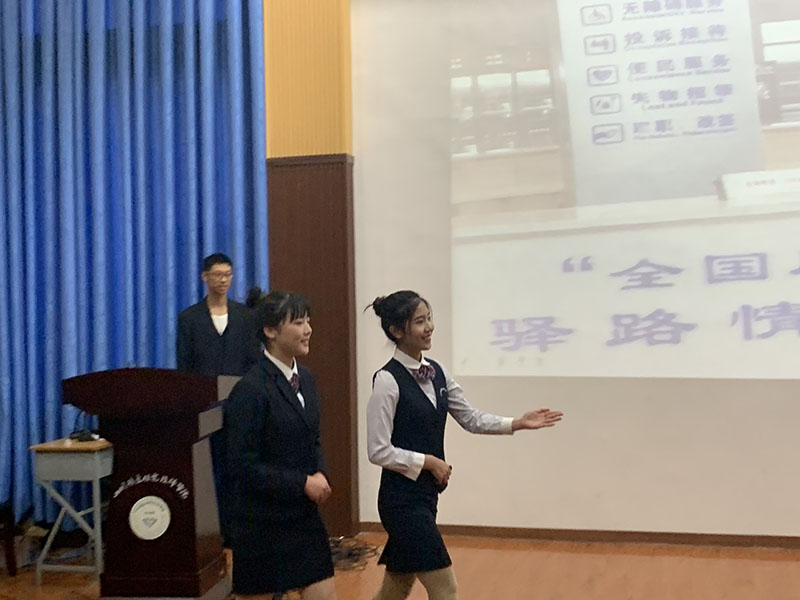 在“礼仪大赛”比赛中,旅游服务与管理的选手们,用别具一格的话剧向评委老师以及在场的同学们展现了社会文明现象,参赛选手们含着饱满的热情,表情投入,神色动作都十分到位,该让同学们学习到了更多的礼仪知识,规范自己的日常行为,将职业礼仪传播得更深更远。
