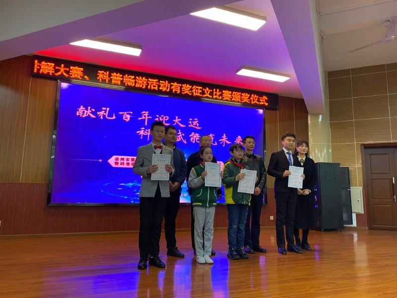 学院副院长、学院科协主席董维与市科协、市教育局、市新科局分管领导一同为科普讲解大赛、科普畅游活动征文比赛获奖代表颁奖。