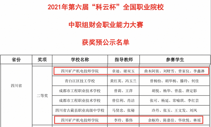 经过师生两个月的共同努力,历经6个小时的紧张角逐,最终会计19231班学生曲木阿依、刘财雪、曾家仪、李鑫淋和会计20211班余枢林、陈嘉佳、华欣悦、林瑶共计8位同学,以优异的成绩取得两项团队二等奖,为学院争得了荣誉。特别是20211班4位同学在仅学习了一学期专业课程基础下,取得如此成绩值得表扬。