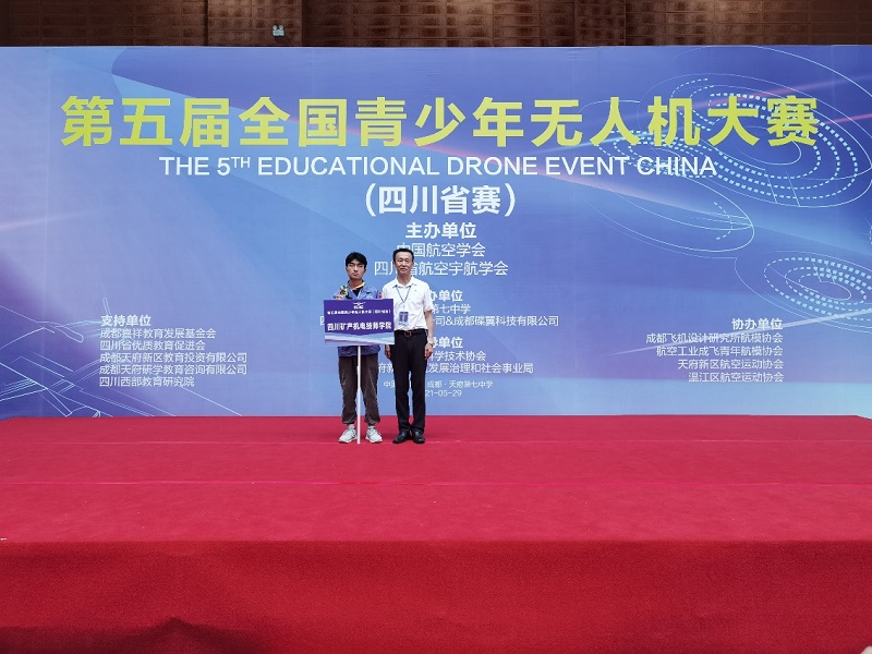 第五届全国青少年无人机大赛(四川省赛)于5月29日在四川天府七中成功举行。我院代表队在本次大赛的AM旋翼个人飞行赛项目中,牢牢占据比赛前10名,最终斩获5个一等奖,6个二等奖,1个三等奖。其中,无人机应用技术专业19231班学生张涛以29.03s的成绩刷新了本项目四川省赛新纪录。