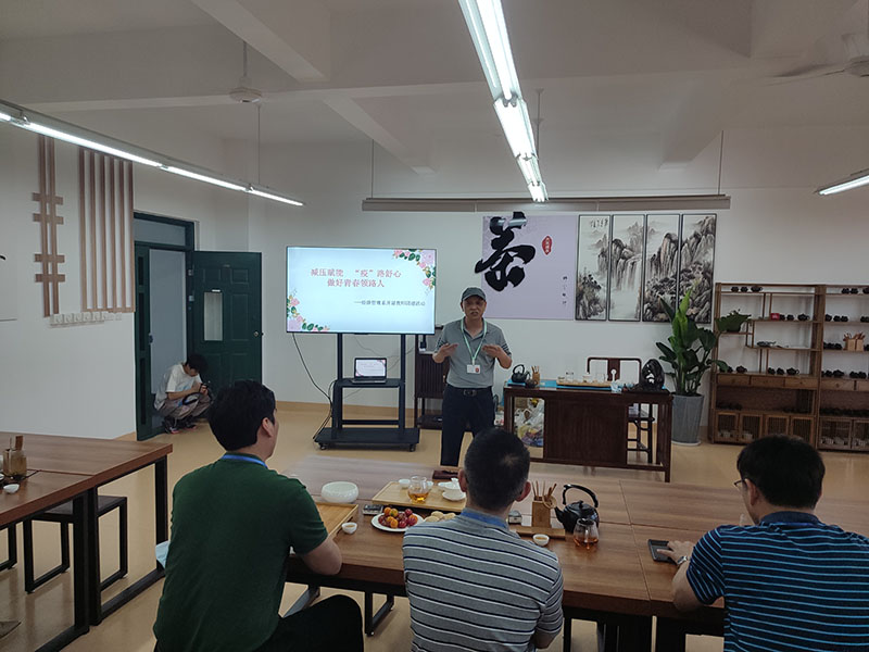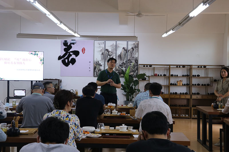 团建活动在阵阵茶香中拉开帷幕。老师们畅所欲言,就工作与生活上的“烦心事”进行了交流分享,在座的老师们相互排忧解难,结合自身经验出谋划策,针对老师们提到的学生管理、学生就业等问题,学生工作处陈国华、招生就业处陈鹏分别进行了解释说明。