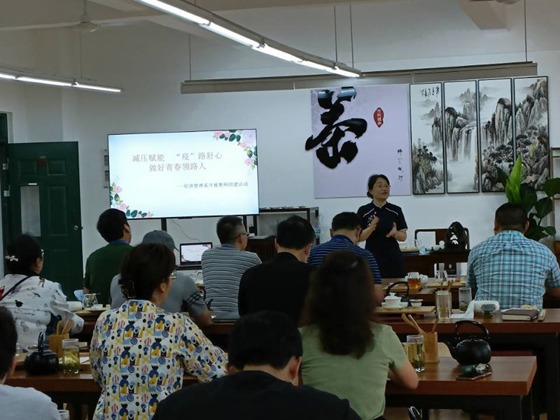 为丰富系部教师生活,释放疫情期间老师工作、心理压力,增强团队凝聚力,4月26日下午,经济管理系在智能楼茶艺实训室组织开展“减压赋能,‘疫’路舒心,做好青春领路人”教师团建活动,系全体教师及担任经管系班主任的教师积极参加。学院副院长郑常翔、董维参加此次活动。