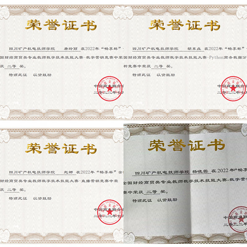 日前,在2022年“畅享杯”全国财经商贸类专业教师数字技术技能大赛中,我校经济管理系教师刘彤老师在“跨境电子商务基础运营”赛项中斩获特等奖,并荣获“全国商贸服务业技术能手”称号。何刘老师在“数字营销”赛项中获得一等奖,唐玲丽、杨晓蓉老师在“数字营销”赛项中获得二等奖,赵娜老师在“直播营销”赛项中获得二等奖,胡东垚老师在“Python商务数据分析”赛项中获得“二等奖”。