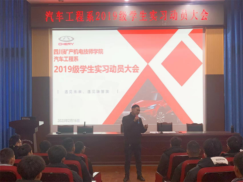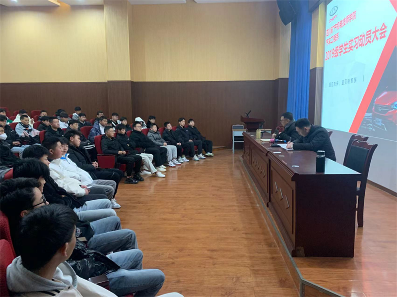 2月17日,汽车工程系学生将前往芜湖奇瑞汽车股份有限公司实习,为提高学生对实习工作的认识,做好岗前实习各项准备,16日上午,汽车工程系在学院学术报告厅召开2019级学生实习动员大会。汽车工程系主任吴天林、副主任蒋明兵、陈茂阳以及汽车工程系2019级全体班主任、学生参与本次会议。