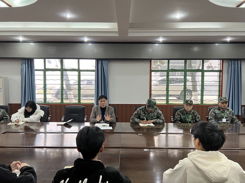 会上,陈国华首先代表全院师生欢迎六名教官的加入。随后,陈国华介绍了学生会各部门的工作内容,并明确了教官和学生会各自职责。他指出,本学期的重点工作是进一步加强学生行为习惯养成教育,树立良好的校风、学风以及加强学生会队伍建设,各部门成员要团结协作,加强政治理论学习,提升自己,以身作则,做全院同学的学习榜样。