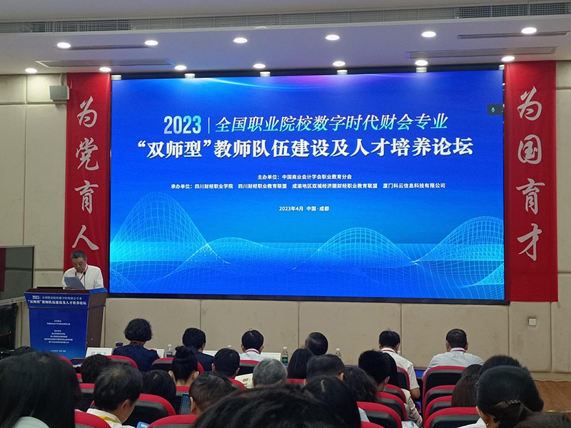 据悉,本次论坛由中国商业会计学会职业教育分会主办,四川财经职业学院、四川财经职业教育联盟、成渝地区双城经济圈财经职业教育联盟、厦门科云信息科技有限公司承办。以“数字时代财会专业‘双师型’教师队伍建设及人才培养”为主题,旨在探讨高品质“双师型”师资队伍建设的思考与实践、“数智财务产业学院”探索与实践、会计技能大赛长胜经验分享、财经类院校提高办学能力的思考以及数字化时代下财务机器人课程建设与探索等若干课题,搭建交流平台,促进职业院校互动研讨,开拓职业教育视野和办学思路,深化职业教育人才培养改革。