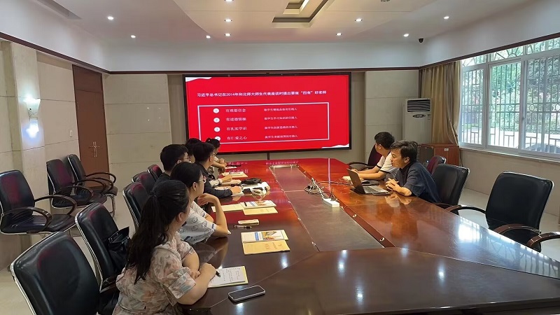 “求索、茫然、目标”,“尽职、尽责、尽心”, 学院纪委书记熊燕分别从学习、工作的三个境界出发,引导新教师们正确地面对学习和工作,并带领大家进行师德师风警示教育专题学习。她结合师德师风的实际案例,讲述新时代师德师风的“三大变化”、《新时代高校教师职业行为十项准则》、《新时代中小学教师职业行为十项准则》等要求,以案为鉴、对标自查,遵守师德规范、严守师德底线、加强师德修养,做“四有”好老师,当育人大先生。