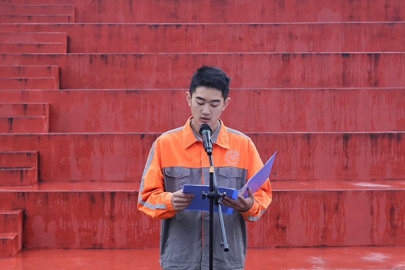 随后,由汽车工程系汽车维修专业20231班的吴太江同学作国旗下演讲。在演讲中,他号召全院青年学生要感恩热爱祖国,要有振兴祖国的强烈责任感,全力以赴提升个人能力,提高综合素质,真正把爱国之志变成报国之行,从身边的点滴行动做起,用实际行动来诠释我们当代职校生对祖国的热爱。