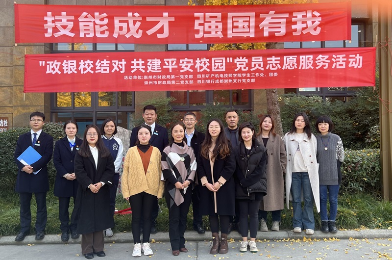 为加强学院网络安全知识教育,普及金融防诈知识,11月29日下午,学院学生工作处、团委联合崇州市财政局第一党支部、第二党支部以及四川银行成都崇州支行党支部共同开展“政银校结对 共建平安校园”主题活动,崇州市财政局机关党委专职副书记杨庆、四川银行成都崇州支行副行长贾鹏出席本次活动,学院副院长张兴顺、纪委书记熊燕陪同。
