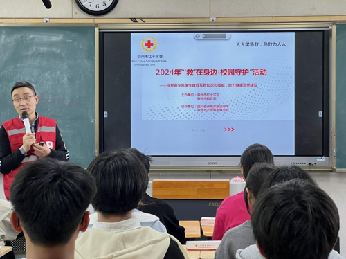 为加强我校红十字救护员队伍建设,发挥群众性应急救护骨干的作用,带动更多青少年积极参与到应急救护知识学习和普及中来,4月1日中午,我院学子到崇庆中学生命健康安全体验馆进行红十字急救培训,市红十字志愿者对我院24名师生进行了应急救护培训。