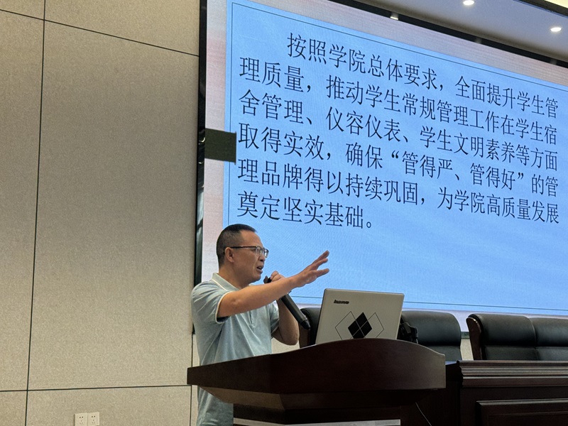 最后,张兴顺作总结发言,他指出,学生管理工作的提档升级是院党委行政的重大决策,是学院高质量发展的基础工作和中心工作。他强调了统一思想与大局意识在学生工作中的重要性,要求各系严格落实各方责任与严格考核。各老师应转变教育观念,明确严格管理不等同于粗暴管理,而应融入方法与爱心,并倡导班主任以解决问题为导向,鼓励大家面对困难不退缩,勇于担当,以积极的思维和坚定的决心推动工作向前发展。最后,张兴顺号召全体人员携手共进,以更加饱满的热情和更扎实的工作,为学生的成长和发展贡献力量。