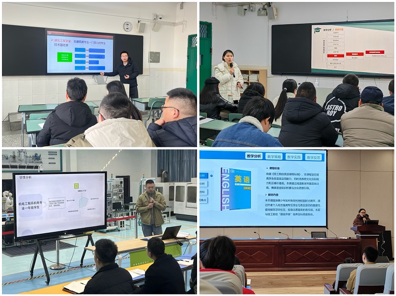 示范课与说课教师围绕各自专业课程,从教学内容、教学目标、教学重难点、教学方法、教学过程、教学评价及课后反思等环节展开详细阐述。系部负责人和现场观摩的老师们针对说课内容,从教学内容的优化整合、学生学情的精准分析、教学方法的科学运用等方面为他们提供了针对性建议和指导,开展了积极有效的交流。