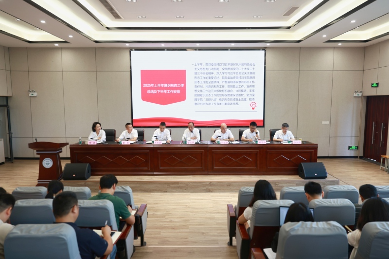 会议指出,2025年上半年我院意识形态工作稳中有进、持续向好,呈现积极健康的发展态势。学院各职能部门要严格落实意识形态工作责任制,坚持将意识形态工作深度融入教育教学中心任务,精准把握其内在逻辑与协同关系,扎实推进宣传工作、思想政治教育、学生管理、网络安全建设及心理健康服务等重点工作。
