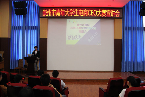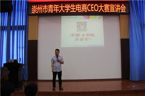 5月10日下午,崇州大学生青年电商CEO大赛宣讲会在我院学术报告厅举行,来自大赛主办方的成都辉聚科技有限公司钟亮经理及成都壹号商贸有限公司,成都大拇指商贸有限公司CEO李航川为参会的近百名同学进行了宣讲,钟经理主要介绍了电商大赛的背景和大赛相关事宜,而李总则从自己如何一步步从零开始,创业的艰辛过程,他利用自身的事迹和通俗的语言深深地打动了在场的同学们,让大家切身感受到创业的不易。