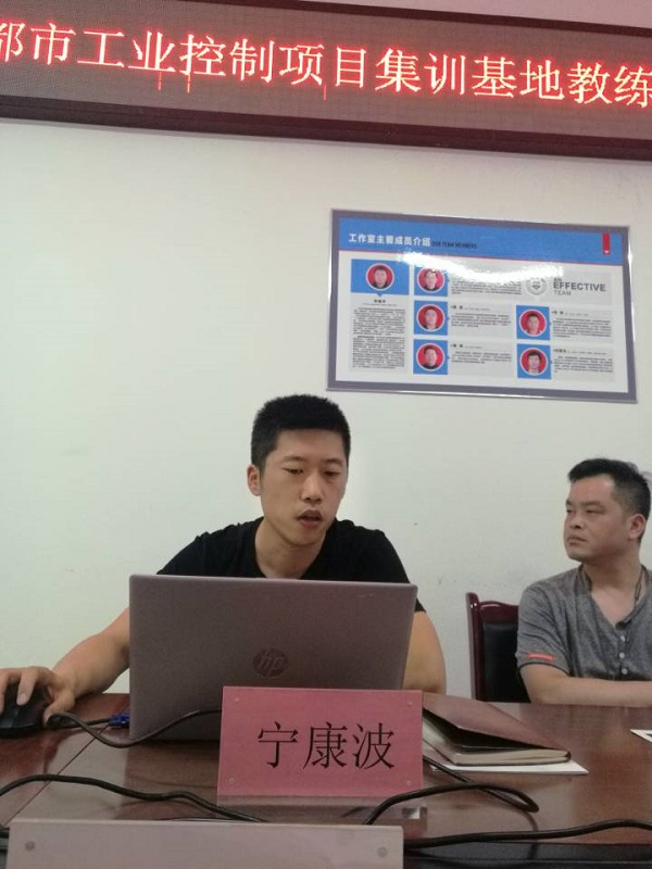 机电工程系周旭主任带领专家组一行参观了相关实训场地,并介绍了学院“成都市工业控制项目集训基地”建设情况。随后双方就工业控制项目竞赛在省内的发展情况、竞赛训练场地建设、竞赛选手选拔、教练团组建及其他备赛过程中的疑虑与专家组进行了深入交流。宁康波专家还对世赛工业控制项目整个竞赛过程进行了系统解读。