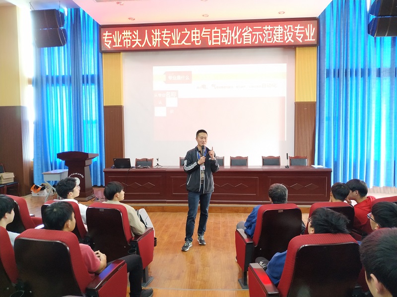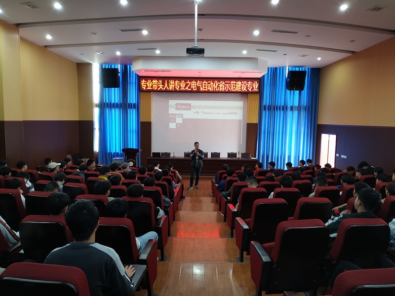 4月26日,机电工程系在院学术报告厅举行“专业带头人讲专业系列活动”之电气自动化省示范建设专业讲解。机电系18、19、20级电气自动化专业全体学生参加,机电工程系主任周旭作为专业带头人主讲。