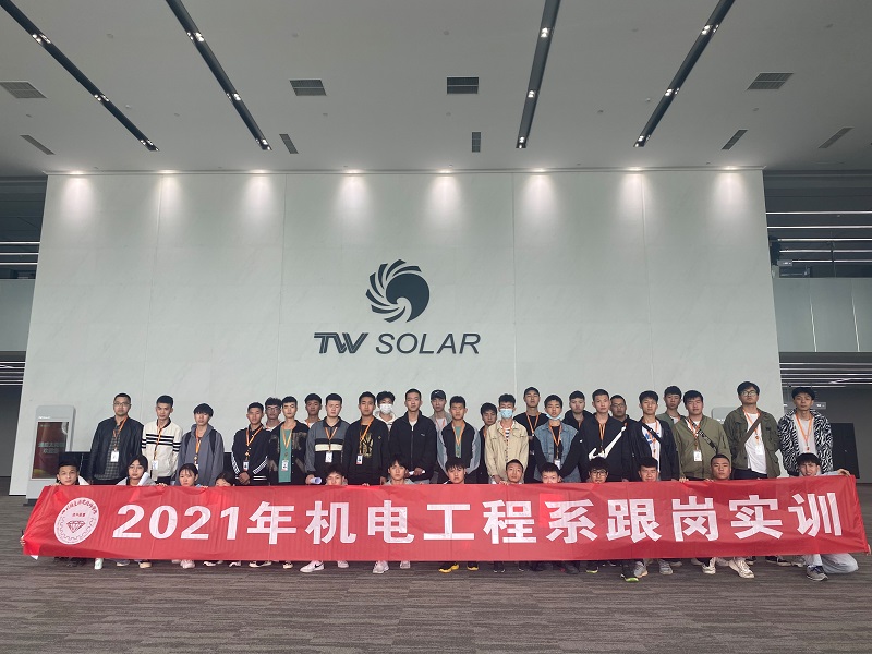 4月12日,机电工程系17级电气自动化设备安装与维修班、工业机器人应用与维护班和电子技术应用班学生在老师带领下到通威太阳能(成都)有限公司跟岗实习。
