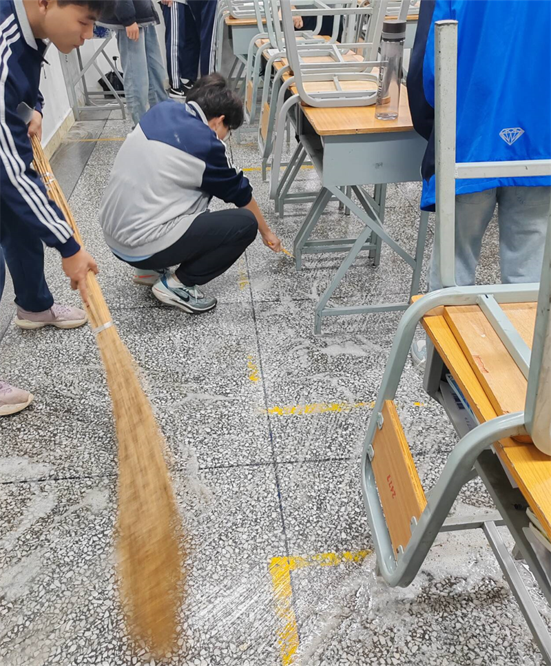 各班利用下午劳动教育课时间,按照提前分配的卫生区域,拿着抹布、扫帚、拖把、清洁铲刀和去污剂等工具,对公区以及教室的地面、桌椅、门窗、黑板、墙壁以及窗台进行了全方位、深层次的打扫,严格做到了地上无垃圾、污垢、门窗无灰尘、卫生无死角、桌椅摆放整齐。在卫生大扫除过程中,同学们发扬不怕苦、不怕累、不怕脏的精神,以高度的热情和饱满的精神投入到劳动中去。在劳动中,同学们感受到了劳动最光荣,劳动最美丽,劳动的人儿最可爱。