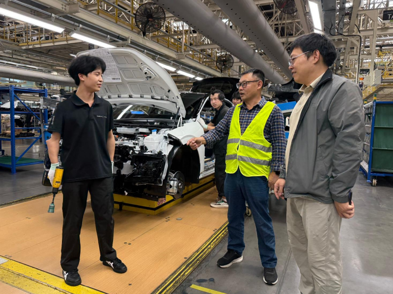 吴天林一行深入冲压、焊装、总装等车间,查看实习生在智能化生产线的实操表现,详细询问岗位适配度与技能提升进度。座谈会上,校企双方围绕实习大纲落实、企业导师带教等展开交流,企业方称赞实习生专业基础扎实,能快速适应智能制造岗位需求。