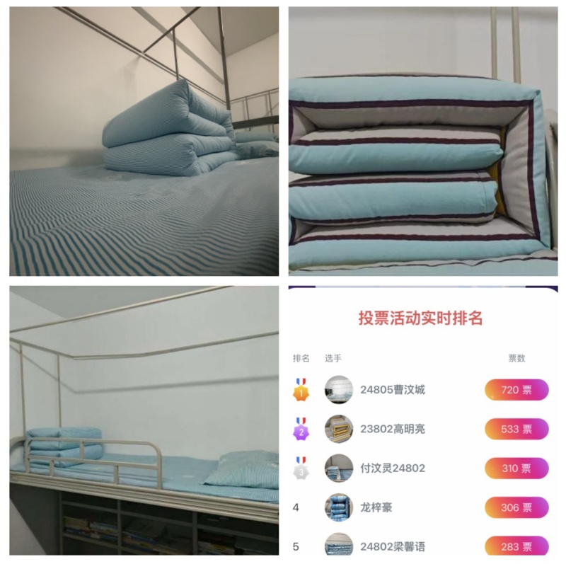 为加强校园文化建设,营造整洁舒适的寝室环境,培养学生良好的生活习惯,汽车工程系(新都校区)于11月至12月举办了以“内外兼修,精彩‘被’出”为主题的寝室内务比赛。