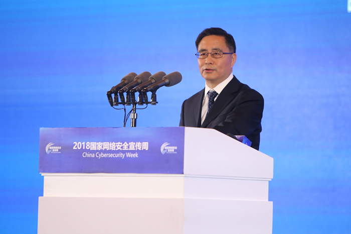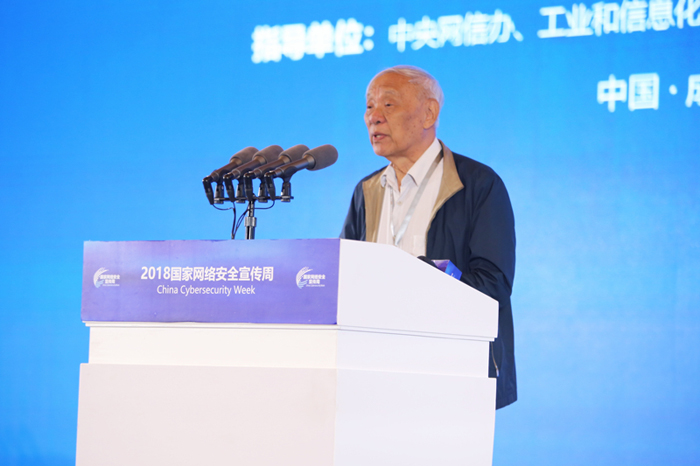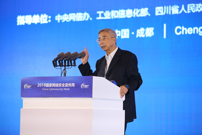 图为中国工程院院士沈昌祥就《网络安全观》发表演讲。中国网信网 李旭 摄