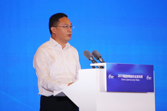 图为中国电子科技网络信息安全公司副总经理,中国电子科技集团公司第三十研究所所长卿昱就《网络安全开启全民密码时代》发表演讲。中国网信网 李旭 摄
