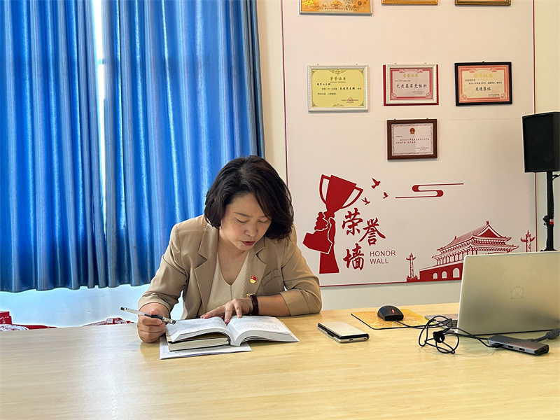 思政课党员教师解海粟对习近平总书记关于以学铸魂、以学增智、以学正风、以学促干的学习分享。她表示,作为教师、班主任,要时刻牢记自己的党员教师身份,坚定理想信念,坚守初心使命。通过学习,党员教师们表示要用习近平新时代中国特色社会主义新思想武装头脑,指导实践,推动工作,切实把学习成果转化为自觉行动。