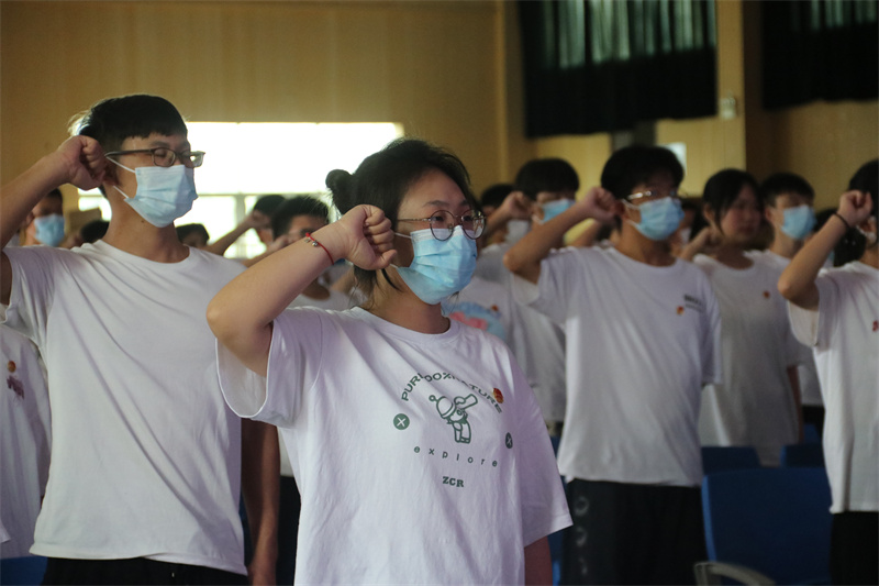 在庄严的国歌声中,仪式正式开始。团委书记陈国华宣读2022年度发展新团员文件,参会领导、老师们及老团员学生代表为新团员佩戴团徽。在团委委员张明利的带领下,新团员面向团旗,以最宏亮的声音,庄严宣誓,铿锵有力的誓言,坚定了执着为共产主义事业奋斗终身的信念。老团员代表王妞同学宣读《团章》中有关团员的义务和权利。新团员代表邹诚同学、老团员代表汪运鑫同学分别讲述了自己对共青团的认识和感受,决心树立崇高理想,遵章守纪,用实际行动践行自己的铮铮誓言,履行好一名团员的权利和义务,用青春的智慧和汗水贡献自己的力量。