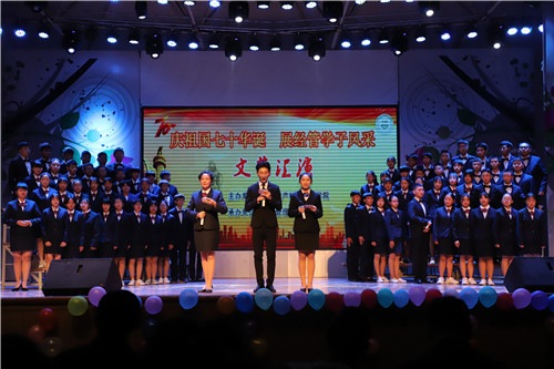 10月16日晚7时,经济管理系在学院大礼堂成功举办了“庆中华人民共和国成立七十周年·展经管学子风采”为主题的文艺汇演活动。校地、校企合作单位领导,嘉宾崇州市团委书记赵疆、崇州市人力资源和社会保障局副局长刘义刚、崇州市就业局局长寇斌、国家税务总局崇州市税务局一分局局长许智君、崇州市图书馆主任袁意,凡仆文化创始人崇州知联会会长闫浩、康泰塑料科技集团有限公司总监马朝洪、京东集团四川京邦达物流科技有限公司校企合作高级经理王飞、东集团江苏京东信息技术有限公司校企合作西南区高级经理金星星、京东集团江苏京东信息技术有限公司校园运营部业务经理王年淑、京东集团江苏京东信息技术有限公司校园运营部主管邹威莅临了汇演现场,学院副院长肖前蔚、郑常翔、董维及各中层干部、系主任和老师出席了此次活动。