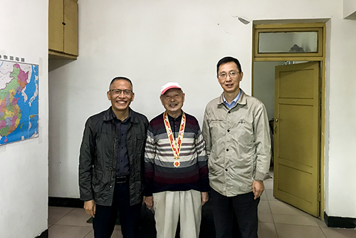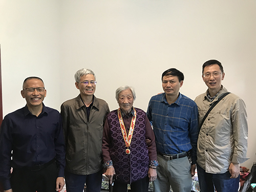 9月16日,四川省地矿局二级巡视员石宗平带领局技安处长杜仁亮、学院党委书记徐振川等一行人,前往在省地质大院内我院92岁离休干部刘士英家中进行看望和慰问,向她为共和国的建立与发展,为四川省地质事业的进步所做出的贡献表示衷心感谢和慰问,并将党中央国务院中央军委颁发的庆祝中华人民共和国成立七十周年纪念章佩戴在老人身上。