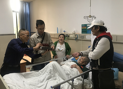 连日来,学院党委书记徐振川带领学院工会、离退休处等部门负责人,先后到德阳、成都和学院住宅小区慰问看望了离休干部陈沛森、沈立,省部级劳模邓岱渊、秦少敏。在德阳广汉,年近90的省级劳模学院老校长邓岱渊见到徐振川书记等人十分高兴,倍感亲切,在听到徐书记带去学院领导班子的祝福问候和学院的发展现状介绍之后,忍不住发自内心的喜悦,对自己曾经的付出甚是欣慰。在成都病床旁,离休干部沈立尽管一直饱受病痛的折磨,多数时间神志不清,但见到学院领导,模糊的意识转瞬间格外清晰,当徐书记把共和国纪念章送到她手中时,禁不住流露出孩童般可爱的笑脸。