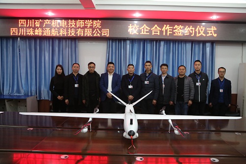 学院副院长董维代表学院与四川珠峰通航科技有限公司签署了校企合作协议,同时双方还互相授牌建立无人机教学实训、考证培训基地。