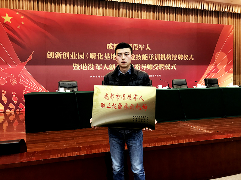 12月18日,成都市退役军人创新创业园(孵化基地)、职业技能承训机构授牌仪式暨退役军人就业创业授牌仪式在成都举行,该仪式由成都市退役军人事务局主办,分别为4家创新创业园(孵化基地)和32家职业技能承训机构授牌,并为51位导师颁发了聘书。