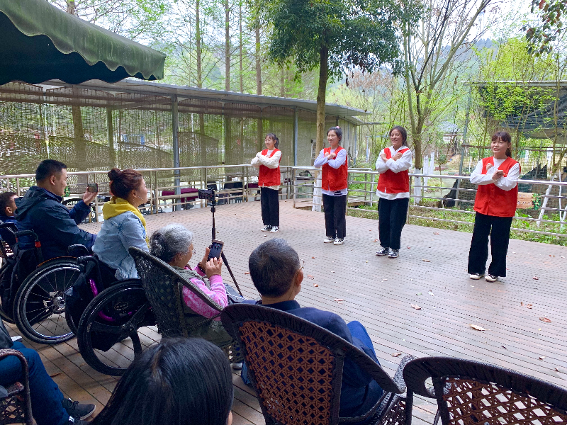 下午,福恩公益对参访残疾人进行了一次无障碍科普实践教学活动,并在我院志愿者的参与下,推广了盲人出行和轮椅出行的无障碍环境应用的知识。最后我院志愿者为残疾人朋友带来精彩的表演,有歌曲演唱《隐形的翅膀》、手势舞《听我说谢谢你》等。精彩的表演使得每个残疾人朋友脸上都洋溢着灿烂的笑容。
