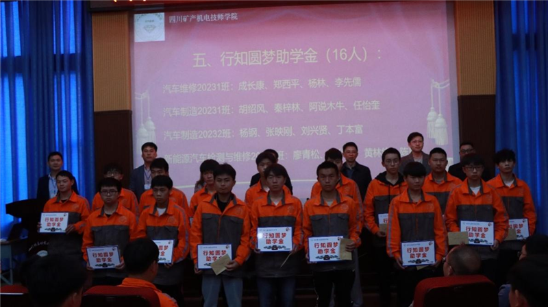 与会领导为获奖学生颁发证书和“行知双百班”项目组提供的现金奖励,奖项设置包括行知素质标兵(奖金600元)、行知一等奖学金(奖金400元)、行知二等奖学金(奖金300元)、行知三等奖学金(奖金200元)、行知圆梦助学金(现金300元)。