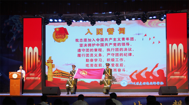 百年风雨兼程,初心历久弥坚。为深入开展党史学习教育,引导共青团员传承红色基因、弘扬革命精神,增强共青团员的先进性和荣誉感,让共青团员在庄严的仪式中接受理想信念熏陶。6月22日下午,我院在礼堂隆重举行“凝聚青春力量,献礼建党百年”为主题的2021年新团员入团仪式,崇州市司法局崇阳司法所所长李先瑞、院团委书记陈国华、院团委委员以及200名新团员参加入团仪式。