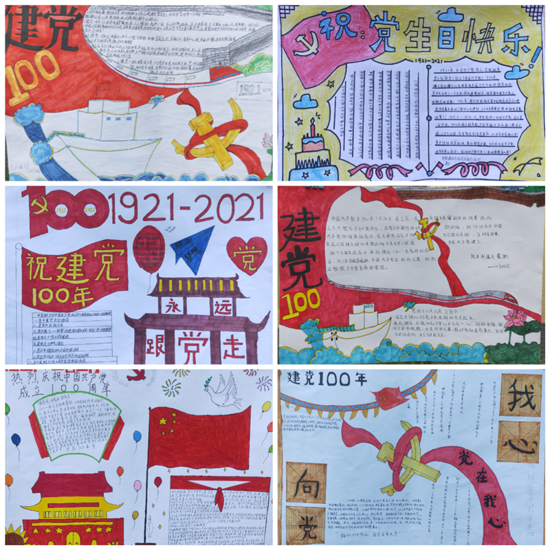 此次手抄报绘画展以及中国共产党百年历史心得体会评比活动,不仅开拓了同学们的动手动脑能力,更借助着纸和笔,表达着对国家的热爱,更为即将到来的党的百年华诞送上一份份真诚的祝福。