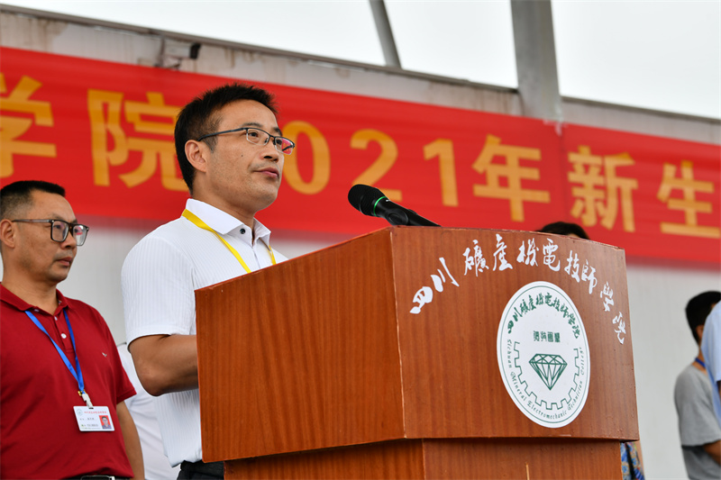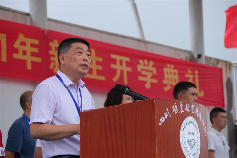 典礼在庄严的国歌声中拉开序幕。院长林仕发讲话,他首先代表学院向新同学的到来表示热烈的欢迎,并向同学们介绍了学院的基本情况。随后他对所有新生提出几点希望:作为新时代青年要担当时代责任;锤炼品德修为,练就过硬本领;有独立精神,成就自我;做到身心健康,体魄强健,意志坚强,充满活力;牢固树立安全意识,增强自我安全保护能力,相信同学们在四川矿产机电技师学院的舞台上,在学院老师们的辛勤培养下,通过自身努力,一定会成为德技双馨的高技能人才,肩负起建设祖国,强大祖国的历史使命。
