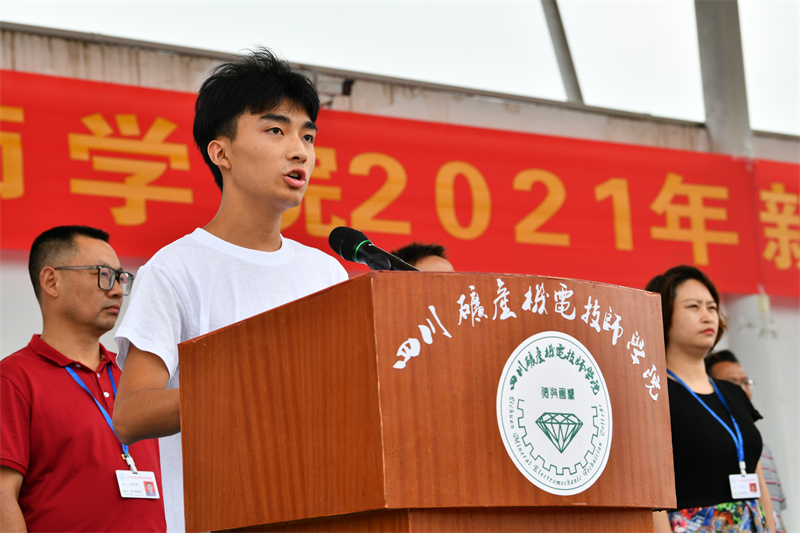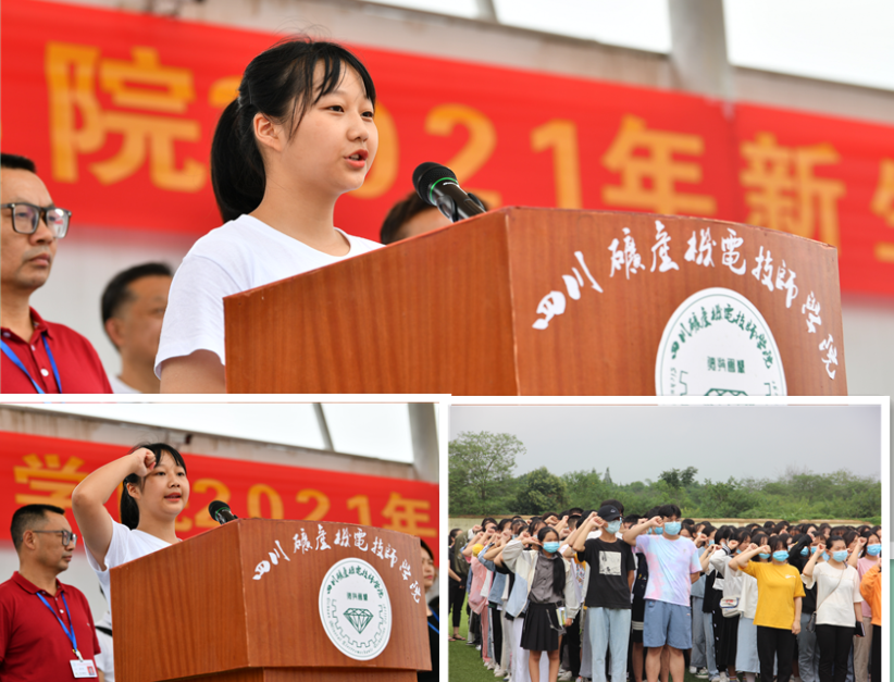 无人机应用技术19231班张涛同学代表老生发言。他回顾了两年来在学校的成长经历,希望同学们抓住新时代大好机遇,积极作为,牢记技能报国、技能强国的使命,为中华民族伟大复兴贡献自己的力量。计算机网络技术21233班陈火琴同学代表2021级新生发言,她满怀希望地对未来的学习生涯进行了长远的规划,表示未来将不忘初心,不负青春,踏踏实实的走好每一步;并带领全体新生对学校、家长许下庄严承诺。