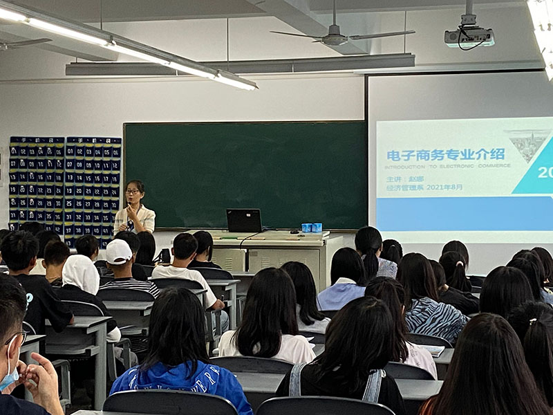 赵娜主讲电子商务专业,主要从专业是什么、学什么、怎么学、干什么等方面进行阐述。同时,全体电子商务专业老师们向学生提出了要求,并寄语学生努力成就专业技能,实现人生价值。