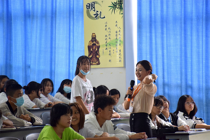 会计专业教师谢双玉从专业建设成就、课程设置、实习实训、就业前景和技能要求、专业知识等方面介绍,并对学生行为习惯和思想品德都提出了新要求和高展望。会计专业负责人章迪就学校概况、系部构成、学校系部宣传公众号和校园风光四个方面进行介绍;在介绍到学校公众号和抖音这些主流APP,学生纷纷拿出手机扫描二维码关注到学校动态,通过详细介绍使学生对学校的了解更为细致。