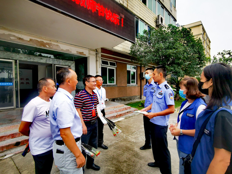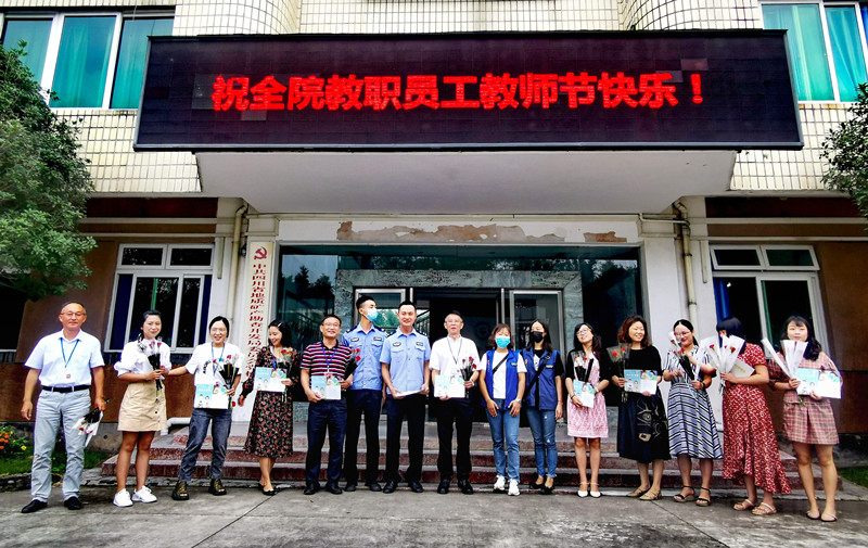 9月10日上午,崇阳派出所李龙警官、西河社区黄巧玲等一行4人代表崇阳派出所、西河社区对我院教职工表示慰问,给我院辛苦耕耘的教师和教育工作者致以节日的祝贺和诚挚的问候,并向教师代表献花、送祝福。