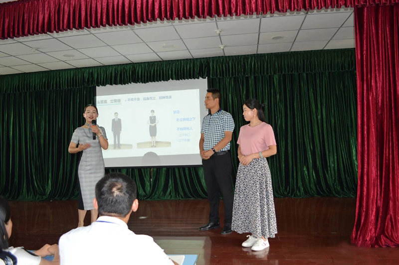 付萍老师以互动交流、动作演示带领三江小学教师们进行了“实战演练”,并对教师仪容、仪表、仪态做了详细讲解和展示。教师们在轻松愉悦的氛围中边学习、边练习,为做一个亲和有礼的教师储备能量。