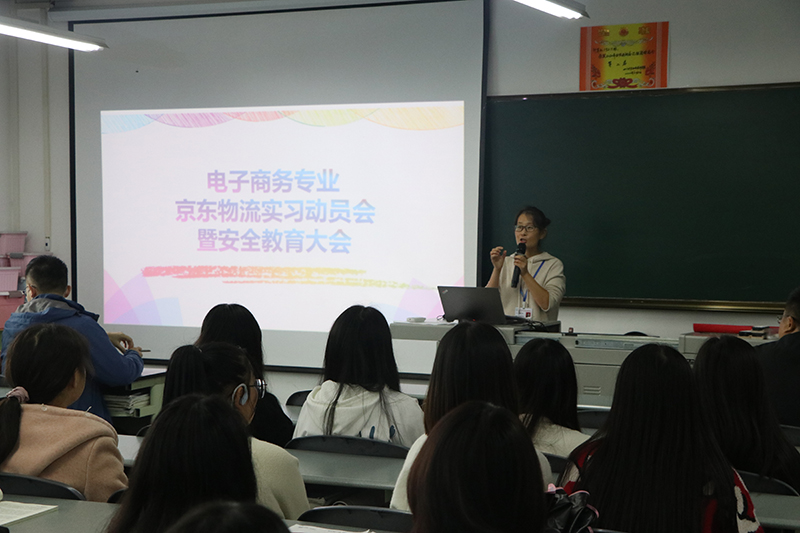“实践是检验真理的唯一标准”,企业实习是职业学校的重要教学环节,是理论课堂与社会实践相结合的重要形式,也是检验学生学习成果的必要途径。经过两年多在校理论学习,经济管理系2019级电子商务专业的同学们即将进入一个新的学习阶段——企业实习。为了让同学们能够更加自信地走出校园面对社会,顺利地适应新的环境与挑战,10月21日下午,经济管理系举行了电子商务专业学生京东物流实习动员会暨安全教育大会。学院教务处处长韦林、经济管理系副主任赵娜、技安保卫处谢晓波老师、电子商务专业全体教师及班主任老师参加动员大会。