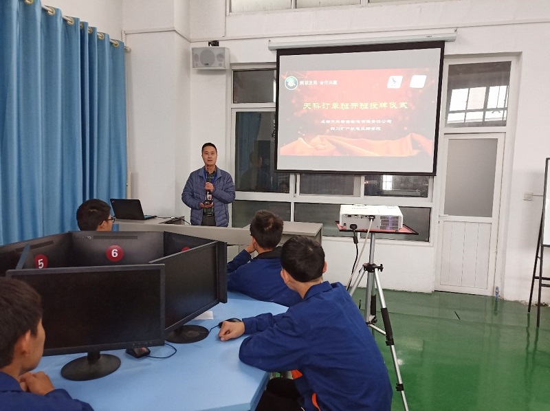 刘垚总经理详细介绍了成都天科精密制造有限责任公司的战略背景和未来企业发展方向等情况。他表示公司高度重视此次订单班的成立,未来将投入大量时间和精力与学院共同打造订单班,并代表企业向同学们提出新的要求和目标,同时展示学院历届优秀毕业生目前在企业的工作情况和所作出的成绩,鼓励同学们在校期间珍惜机会,利用学院和企业提供的学习和实践平台努力学习。