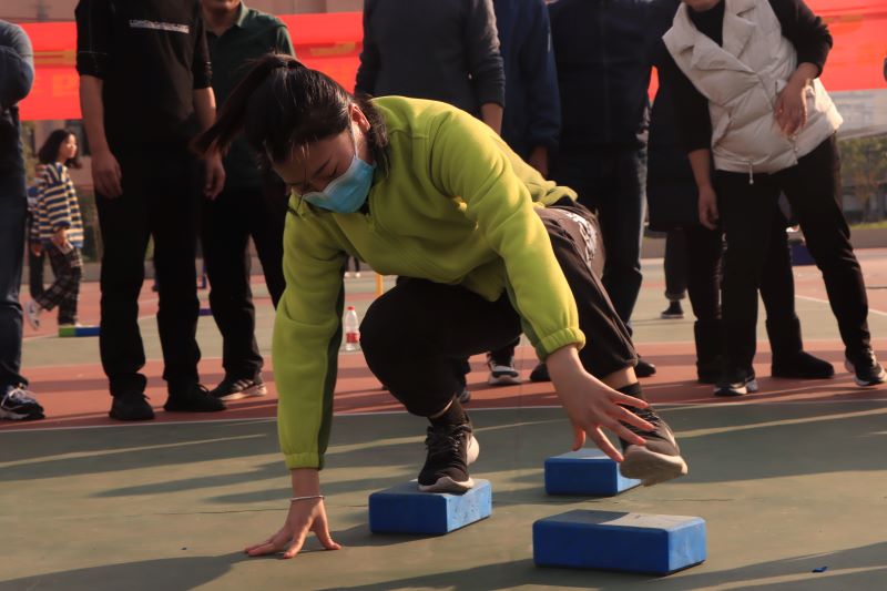 全体教职员工踊跃参与,以工会小组为单位,组成10个参赛团队。随着学院工会主席熊燕一声令下,“趣味运动会”开始,大家就像回到了童年,开始“玩”起来。此次运动会设置了6个比赛项目,分别是背球接力赛、蹲跳接力、摸石过河、集体跳绳、袋鼠跳和三人四足,同时还准备了丰富的奖品。每个项目不仅锻炼团结协作的精神,还是智慧与体力的比拼。