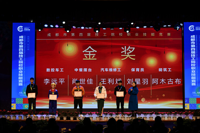 据悉,此次竞赛以“技能为骨、匠心为魂”为主题,由成都市人力资源和社会保障局主办、崇州市人力资源和社会保障局协办、四川矿产机电技师学院承办。大赛分为学生组和教师组,共设7个竞赛项目,其中学生组设置数控车工、中餐摆台、汽车维修工、保育员、砌筑工等5个项目,教师组设置班主任职业能力竞赛和教师课程思政说课竞赛2个项目。来自成都市24所技工院校和民办培训机构的137名师生在7个项目中切磋技艺、亮出绝技,最终决出金奖7枚、银奖14枚、铜奖21枚,获奖选手将被授予“成都市技术能手”称号。